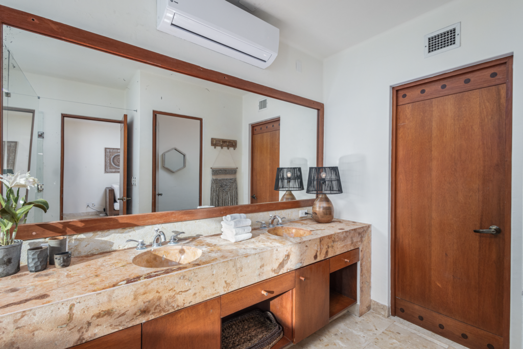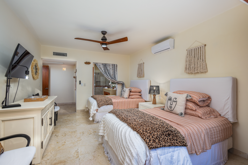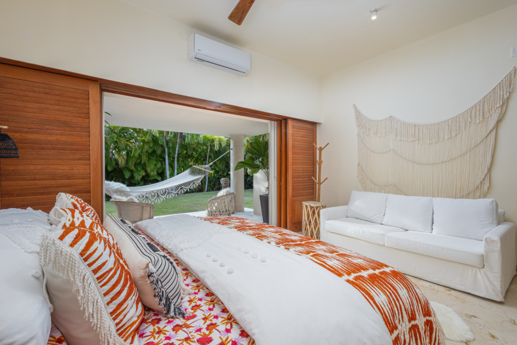 Casa Libre is perfect for families or larger groups, with four large bedrooms, each with its own outdoor sitting area or patio. Lower-level bedrooms walkout to a private yard. There is a large TV den with a 70″ Smart TV with streaming services and giant lounge bed for relaxing and chilling after a day in the sun. Smart TVs with streaming services in 3 bedrooms, living area, and TV den. Smart TV with streaming services in the main living area and TV den for news, sports, etc. UV drinking water system, 3 times filtered. Within the main master suite, the sofa conveniently converts into a pull-out bed, perfect for accommodating younger children while their parents enjoy the upper master bedroom!
