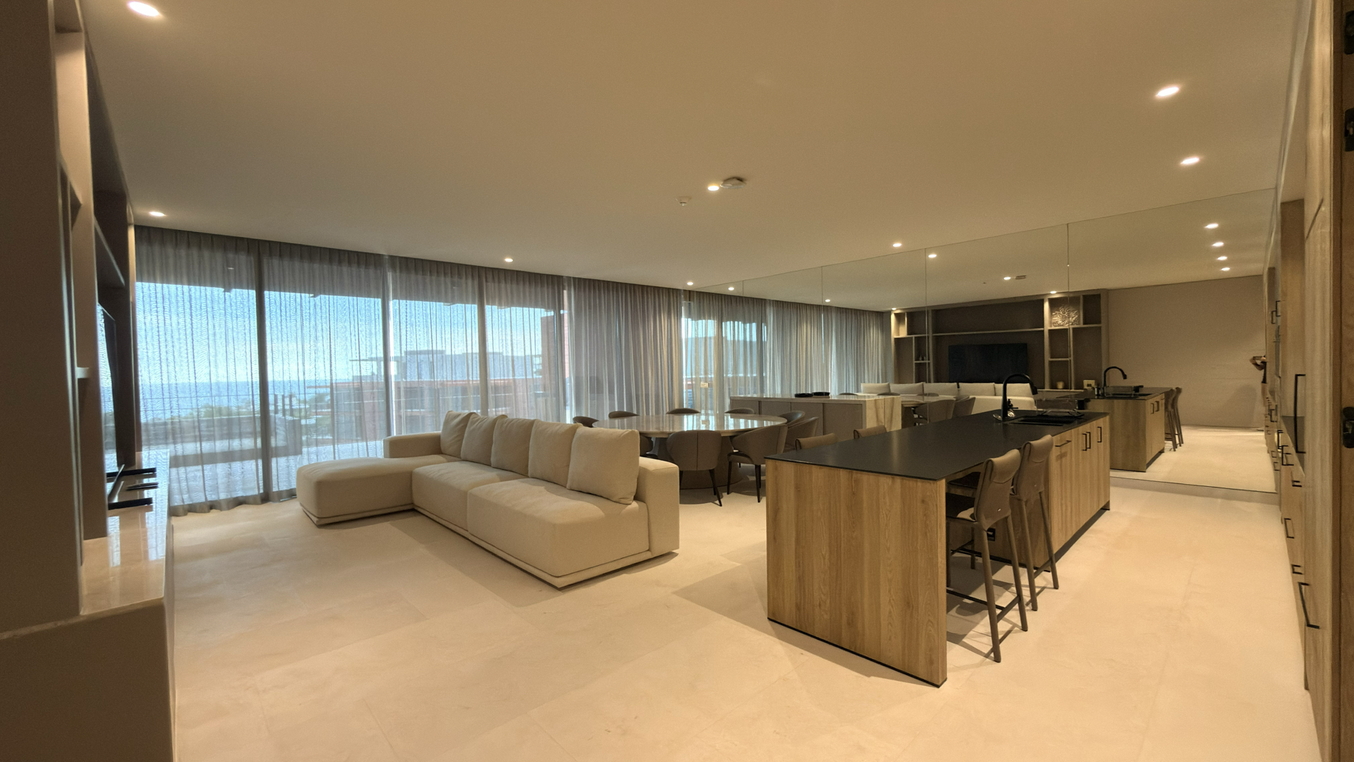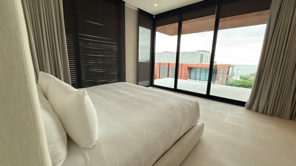 The penthouse’s expansive windows and panoramic terraces showcase breathtaking vistas of the Pacific Ocean, the surrounding jungle, and the glowing evening sky. Whether you’re sipping morning coffee with ocean breezes or enjoying sunset cocktails outdoors, every moment feels connected to nature.