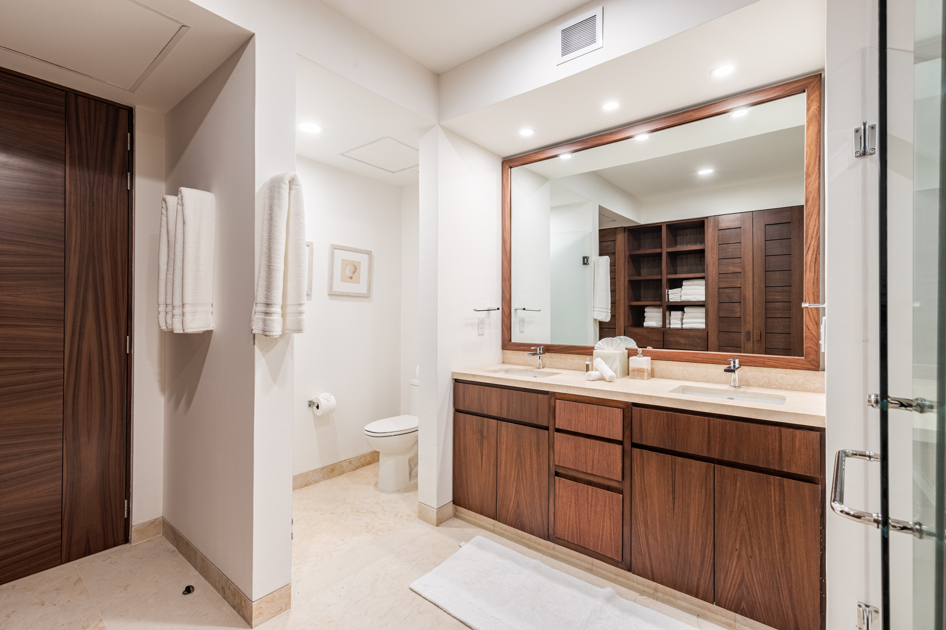 Each of the three professionally designed bedrooms features spectacular ocean views and ensuite bathrooms with Helvex fixtures. Accommodating families or groups, the condo sleeps 8 adults or 4 adults with 6 children comfortably.